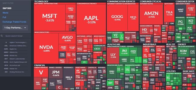 Indexy (hlavně ty americké) dnes dostaly pořádně "nařezáno". Nejvíc krvácely "techy", především ty z "magnificent seven". Důvodem jsou především neuspokojivé hospodářské výsledky firem. Značně krvácela Tesla (-11,75%), krvavou lázní prošla ale i nVidia (-6,88%), Qualcom (-6,13%) nebo Meta (-5,34%). Vypadá to, že mezi investory rostou obavy z dalšího průběhu výsledkové sezóny. Zároveň sledujeme, že tendence nastupovat na AI vlnu se mění v pochybnosti, zda firmy dokáží obhájit své vysoké valuace produktivitou vysokých kapitálových výdajů. Odnáší to nejen včera reportující Alphabet, ale také další technologicky zaměřené akcie, zejména v oblasti polovodičů.