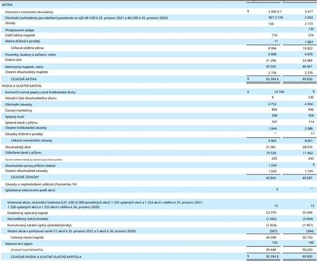U rozvahy platí to samé. Zde je přehled rozvahy společnosti ale já se radši orientuji podle marketwatch. Mám zde data za uplynulých 5 let. První věc na kterou se zde dívám, tak jestli jsou krátkodobé aktiva větší než krátkodobé pasiva. Toto mi říká zda pokud společnost nevydělá dostatek peněz na splacení závazku v aktuálním roce, tak jestli má nějaký prostor pro řešení. A právě tím řešením může být pokusit se prodat část svých oběžných aktiv a z utržených prostředků uhradit závazky. Zde je situace taková, že společnost nemá tuto metriku stoprocentní. V roce 2017 a 2021 měla více závazků splatných v daném roce než měla oběžných aktiv. Tato metrika sice není důležitá pro výkonnost ale je to dobrá pojistka pro společnost. V tomto případě se jedná o jednorázové výkyvy a společnost tuto situaci nezažívá každý rok. Nejspíš se zde promítlo snížení aktiv v položce ostatní oběžné aktiva anebo byla v daném roce splatná větší část dlouhodobého dluhu. Dále má společnost poměrně vysoký dluh. Za předpokladu, že bude společnost vynakládat průměrně 2,51 mld. USD volného cashflow ročně pouze na splacení dlouhodobého dluhu, tak jej splatí zhruba za 14 let. 2,51 mld. USD jsem zvolil z toho důvodu, protože se jedná o průměrné roční cashflow, které společnost generuje za posledních 5 let.