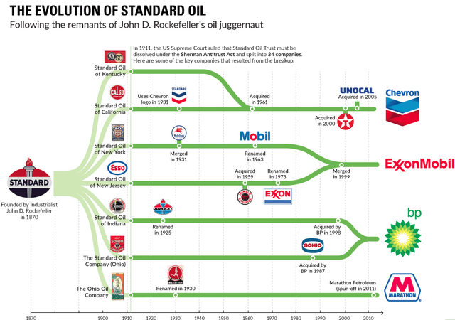 Rockefeller věděl, že samotná cena akcií nemá žádný význam. Nikdy neměl v úmyslu prodávat. O několik let později byl Standard Oil Nejvyšším soudem USA donucen rozdělit se na více společností. Prostřednictvím fúzí a akvizic je mnoho velkých ropných společností dodnes přímo spjato s Rockefellerem.