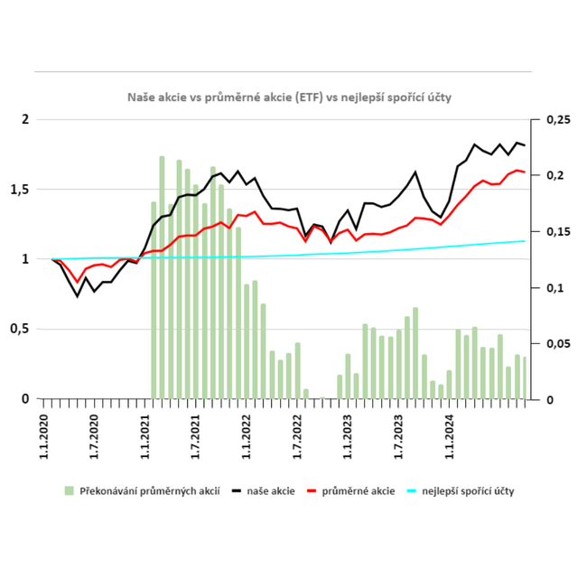 V srpnu průměrné akcie v ETFkách porazily naše akcie.