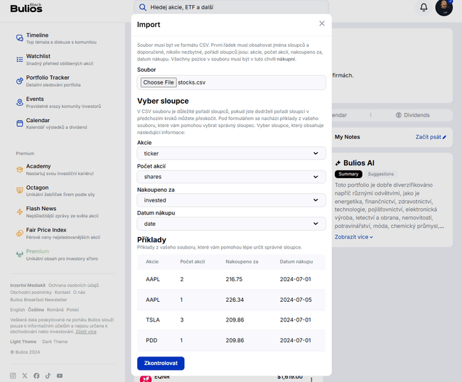 Důležitá novinka! Ode dneška můžete v betaverzi nahrávat své portfolio (nakoupené pozice) skrze csv soubor.