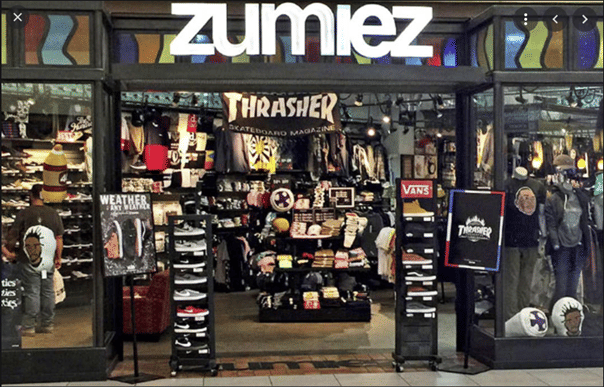 Společnost Zumiez $ZUMZ má obchody po celé USA. Říká se, že mají obchod téměř v každém nákupním centru. Celkem mají 723 obchodů, z toho 601 ve Spojených státech, 52 v Kanadě, 55 v Evropě a 15 v Austrálii. Zkušení skejťáci raději nakupují v pohodovém malém obchodě, ale tento obchod není zaměřen na ně, protože oni už skejtují a mají veškerou výbavu, tento je zaměřen na nováčky a jejich rodiče. Což je právě důvod, proč by mohli tržby firmy dosáhnout značných nárůstů v reakci na nadcházející olympijské hry. Téze je jednoduchá, přidání těchto sportů na olympiádu způsobí větší zájem o ně převážně u mladých generací. Větší zájem u dětí znamená rodiče, kteří budou pro jejich mladé nakupovat potřeby k těmto sportům a Zumiez $ZUMZ se k těmto nákupům ukáže jako perfektní volba.