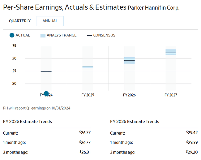 Zatímco historické tempo růstu EPS pro Parker-Hannifin je 21,5 %, investoři by se měli skutečně zaměřit na předpokládaný růst. Očekává se, že EPS společnosti letos vzroste o 4,7 %, čímž překoná průměr odvětví, který vyžaduje růst EPS o 4,5 %.