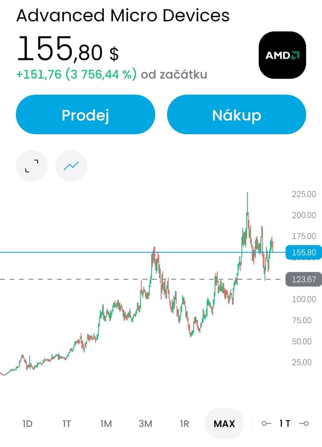 Moc pěkné. Rozhodně v $AMD věřím, že má velký potenciál. Mezi mými prvními nákupy je $TSLA na $388 :) takže tak bych to asi nechal.... I přes mnoho špatných investic je moje portfolio nyní v hezkém zisku :) takže jsem celkově rozhodně spokojen a věřím, že jednou se moje nyní ztrátové pozice posunou nahoru (minimálně u Tesly bych v to věřil)
