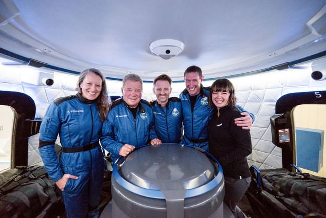 Spolu se Shatnerem dnes letěli dva platící zákazníci a zaměstnanec společnosti Blue Origin. Byli mezi nimi Chris Boshuizen, spoluzakladatel malé satelitní společnosti Planet Labs, a Glen de Vries, spoluzakladatel softwarové společnosti Medidata. Společnost Blue Origin při letu zastupovala Audrey Powersová, viceprezidentka pro mise a letové operace.