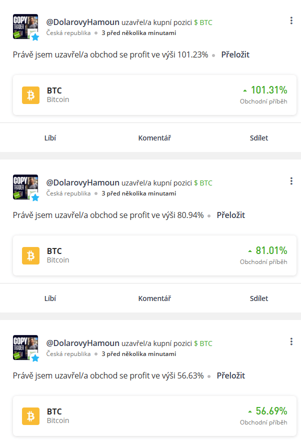 Já do BTC investuji dlouhodobě, ale chápu že kolem 100% zisku už člověk chce ten zisk vybrat. Já to ve finále dělám podobně, ale vždy prodám jenom menší část abych vybral ten velký zisk a tu větší část si v portfoliu nechám.
