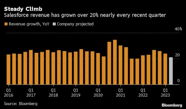 Dalším faktorem může být meziroční růst tržeb (ve Q1 +24 %), který ale jeví tendenci zpomalení. Co neukazuje podobný trend jsou náklady na vygenerované tržby. Ty rostou větší s mnohem větší vervou (+31,5 %). Salesforce si pochvaluje výnosy, které plynou ze společnosti Slack, která byla akvírovaná v roce 2020 za 27,7 mld. USD. Slack do celoskupinové kasy přispěl částkou 344 mil. USD.