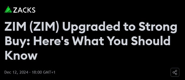 Společnost Zacks Investment Research zvýšila své doporučení pro akcie $ZIM (Zim Integrated Shipping Services) a zařadila je do svého seznamu silných nákupů pro prosinec.