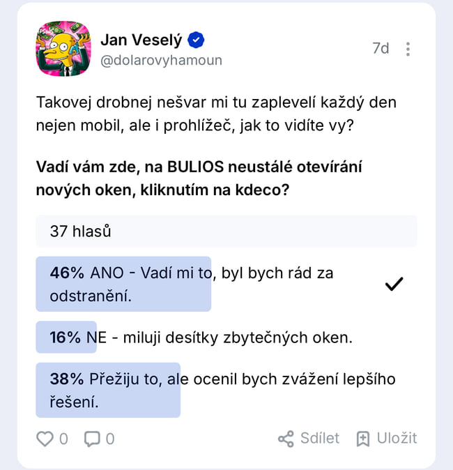 suhlasim, ze tiez by som prijal standardnejsie riesenie - klik otvaram, ctlr+klik (klik kolieskom) otvorit na novej karte, Uprimne mi no najviac prekaza prezerani akcii. Vyhladam ticker kliknem -> nove okno. Precitam vyhladam znova akciu, klik -> opat nove okno.