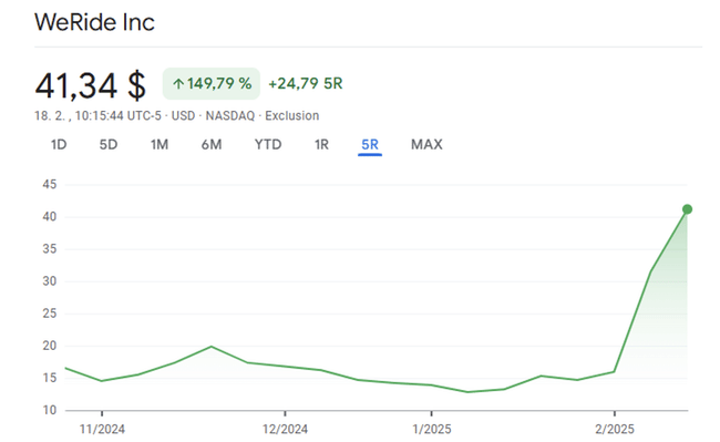 Akcie lídra v autonómnej mobilite WeRide zaznamenali nevídaný skok
