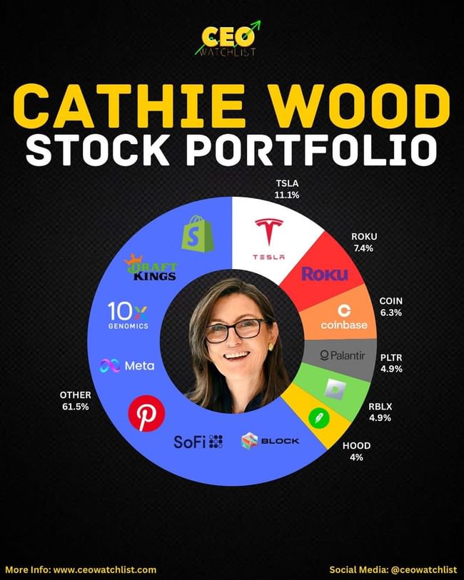 Cathie Wood je americká portfolio manažerka fondu s názvem Ark Innovation, na který je navázáno ETF s tickerem $ARKK. Cathie do fondu vybírá jen technologické firmy s budoucím potenciálem, ale často ty menší ještě nemají zisky.
