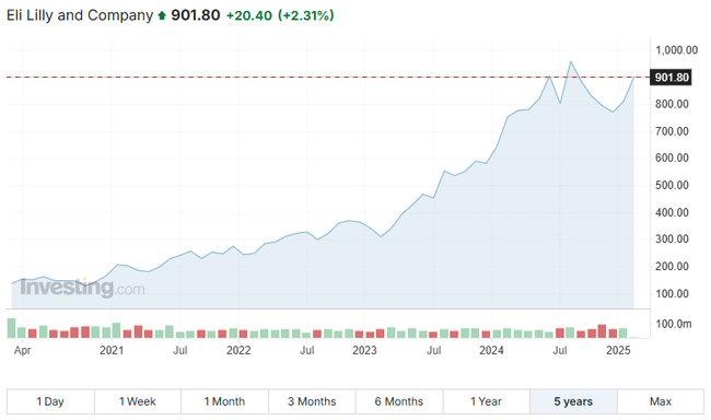 Výsledky společnosti Eli Lilly za čtvrté čtvrtletí 2024, zveřejněné 6. února 2025, ukázaly rostoucí dominanci léku Zepbound, jehož prodeje dosáhly téměř 2 miliardy USD. Přestože tržby mírně zaostaly za očekáváními, podle finančního ředitele Lucase Mantarceho se stal lídrem na trhu léčby obezity. Společnost byla nucena rozsáhle investovat do rozšíření výrobních kapacit, což by mělo umožnit 1,6krát vyšší produkci oproti roku 2024. Celkové příjmy dosáhly 13,53 miliardy USD, což představuje meziroční nárůst o 45 %, zatímco zisk na akcii činil 5,32 USD.* Čistý zisk vzrostl na 4,41 miliardy USD z 2,19 miliardy USD v předchozím roce. Eli Lilly očekává v roce 2025 tržby mezi 58 až 61 miliardami USD a zisk na akcii v rozmezí 22,05 až 23,55 USD. Společnost plánuje rozšíření léku Mounjaro na nové mezinárodní trhy, což by mělo dále podpořit růst.[1]