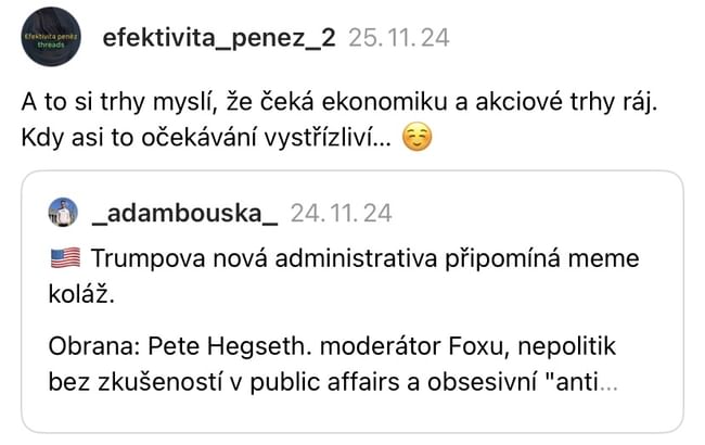 Nejen v životě, ale na trzích hlavně zachovat chladnou hlavu je prospěšný. Sdílel jsem na síti Threads tehdy a aktuální dnes: