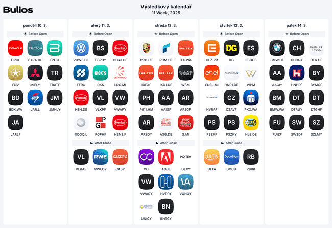 Já mám momentálně v hledáčku: $ORCL, $8TRA.DE, $VOW3.DE, $ZIM, $CCI, $CEZ.PR, $OCI.AS.