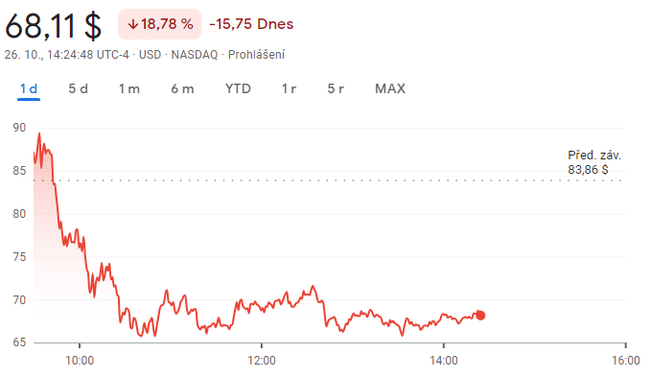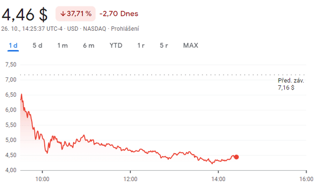 Cena akcií (DWAC) se v dnes na začátku obchodování propadla o více než 20 %. A malý startup Phunware, který se zabývá reklamním softwarem, klesl dokonce o více než 34 %.