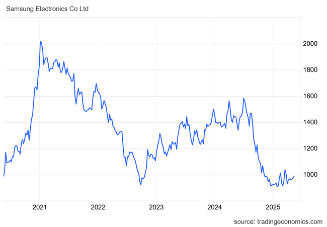 Výkonnosť ceny akcií spoločnosti Samsung za posledných päť rokov