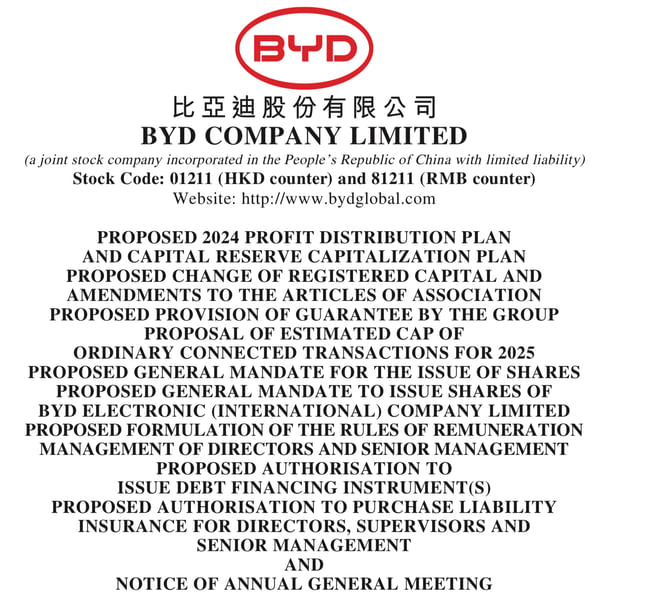 V skratke, tento dokument je kľúčovým oznámením pre akcionárov BYD, informujúcim ich o budúcich firemných krokoch, najmä o významnom navýšení počtu ich akcií prostredníctvom bonusových a kapitalizačných emisií.