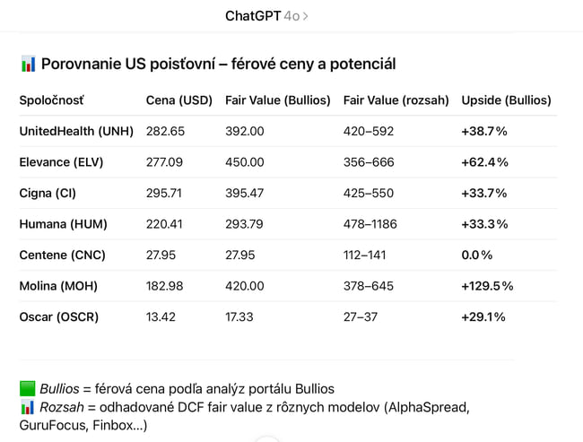 Pojišťovny $UNH $CI $ELV jako jediné z jmenovaných mám na watchlistu (pro dlouhodobého investora) a zatím jsem si určil férovou cenu u nich teda o 90$ níže, než Bulios Black. Ted jsou levné z dobrého důvodu a vyrůst na tak vysoké hodnoty jim může trvat i 1-2 roky…