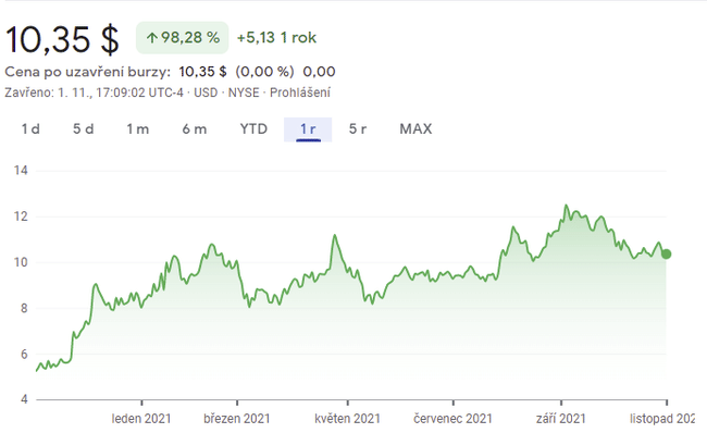 Cena akcií společnosti $UMC se v současné době pohybuje na úrovni 10,27 dolarů, což je přibližně 18 % pod 52týdenním maximem 12,62 dolarů (09.03.21). Dne 27. 10. byly zveřejněny výsledky za 3. čtvrtletí, kdy byl vykázán zisk na akcii, který byl o 0,07 dolaru vyšší než konsensuální odhad 0,19 dolaru.