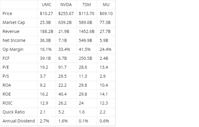 Analýza konkurence: $UMC/$NVDA/$TSM/$MU