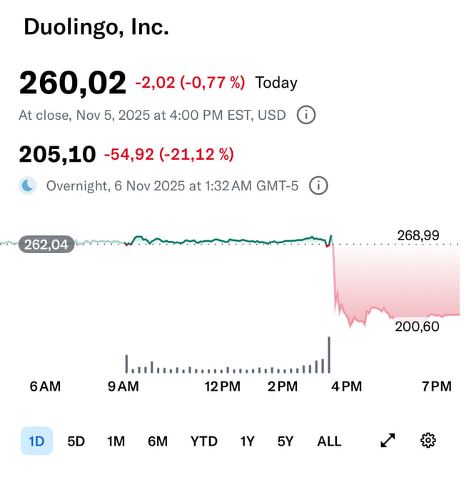 🚨 $DUOL Duolingo doručilo solídne výsledky no akcia poklesla o skoro 20%‼️