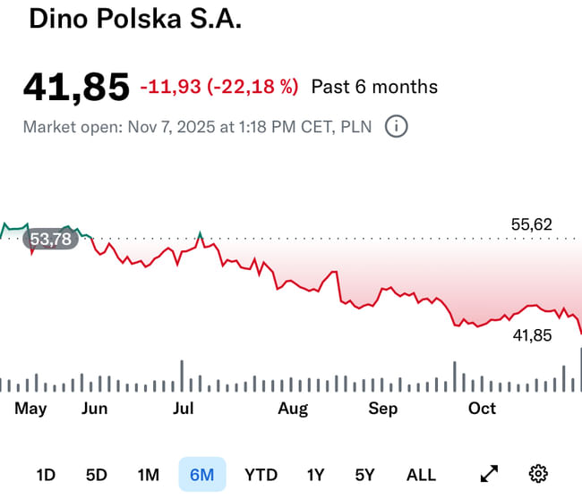 V posledních dnech nám tu skáčou slevy, převážně z USA trhu, dnes v Polsku propad u $DNP.WA, což je diskontní obchodník potravin s mini markety v městečkách a sídlištích, kdy jeho byznys model dovoluje možnou budoucí expanzi i za hranice. Jejich velký moat je v tom, že si obchody staví samy na svých koupených pozemcích a tím snižují náklady, proto mají vynikající ROE 22 %, ROA 12 %, s růstem EPS 20 % v příštích letech. Není vyloučena možnost zavedení dividendy v budoucnu.