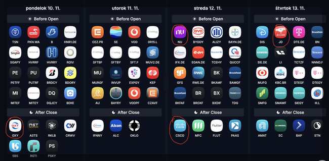 ➡️Osobne budem sledovať hlavne spoločnosti $OXY (jedna z mojim najmenej ziskových pozicií) $NU (mám vysoké očakávania a tvorí moju 6. najväčšiu pozíciu) $JD,(zamýšľam sa nad vstupom, keďže čínske spoločnosti sú taktiež vo výraznom poklese) $DIS, (zaujímam sa, či firma prinesie nejaké novinky pretože mi príde, že nestíha za spoločnosťami ako je netflix) $RKLB (v minulosti som uvažoval nad nákupom no nakoniec som od toho upustil) a mnohé ďalšie.