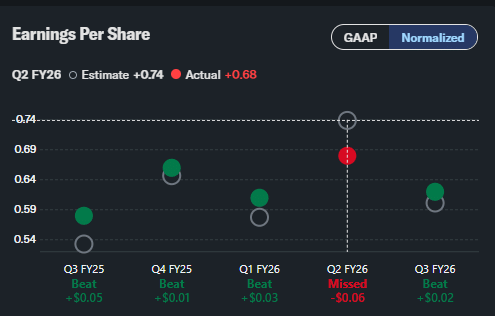 neska si Walmart připsal slušný růst akcií, a není to jen náhoda. Ve svém třetím čtvrtletí reportoval tržby 179,5 miliardy USD, což je meziročně o 5,8 % víc, a navíc firma navýšila výhled na celý rok očekává tržby růst mezi 4,8 % a 5,1 % a upravený zisk na akcii mezi 2,58 a 2,63 USD. To ukazuje, že základní retailový byznys je stále stabilní, ačkoliv konkurence i inflace jsou znát.