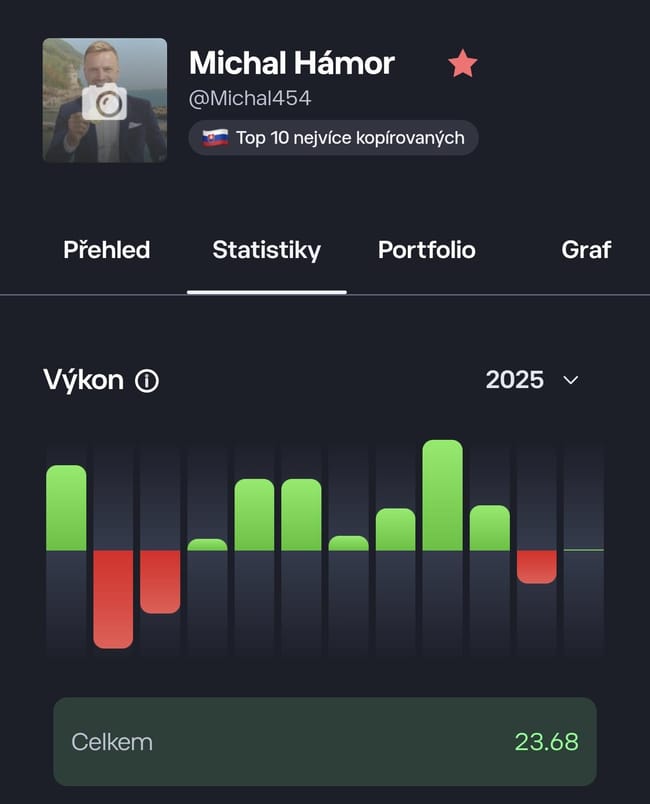 Investovaniu sa venujem 11 rokov a posledné 2 roky pôsobím na eToro ako Popular Investor. Prešiel som si rôznymi fázami trhu – silnými rastmi, prudkými prepadmi aj obdobiami neistoty. Práve tieto skúsenosti ma naučili, že dlhodobý úspech neprichádza z náhody, ale z disciplíny, likvidity a schopnosti konať v čase strachu.