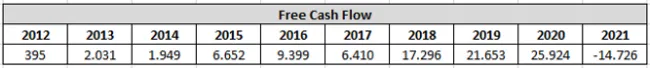 Nakonec zkoumáme volný peněžní tok. Stručně řečeno, volný peněžní tok je hotovost, kterou společnost generuje poté, co zaplatí provozní náklady a kapitálové výdaje.