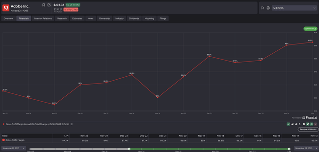 Potom tu máme marže. Za mňa je pri tak jednoduchej aplikácii hrubá marža okolo 72% málo, keďže nemajú nejaké obrovské náklady na samotný chod aplikácie. Keby masívne investovali do vývoja a zlepšovania produktu a marže by klesali, viem to pochopiť a prišlo by mi to super. Lenže realita je taká, že napríklad Adobe, čo je tiež v princípe „len aplikácia“, má výrazne vyššie náklady na cloud, infraštruktúru a celý ekosystém, a napriek tomu si drží marže blízko 90%. To mi jasne ukazuje rozdiel v kvalite biznis modelu.