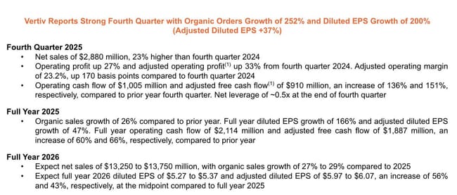 Vertiv $VRT +25 % po výsledcích za Q4 2025