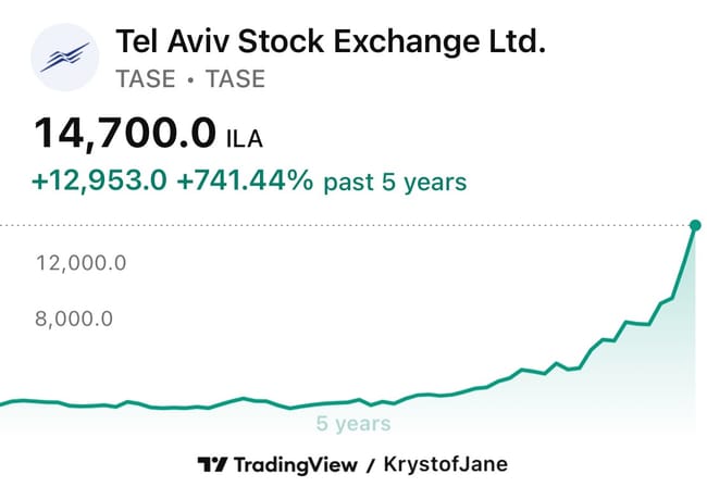 Akcie Tel Aviv Stock Exchange (ISIN IL0011590291) za posledních 5 let rostou o 741 %!