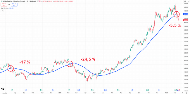 Google $GOOG je pod 50denním klouzavým průměrem!