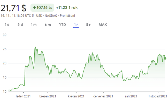 Pro ty co firmu neznají, tak SOFI Technologies je online společnost zabývající se osobními financemi. Poskytuje řadu služeb v oblasti půjček a správy majetku. Momentální cena akcií je zhruba 21,7 dolarů.
