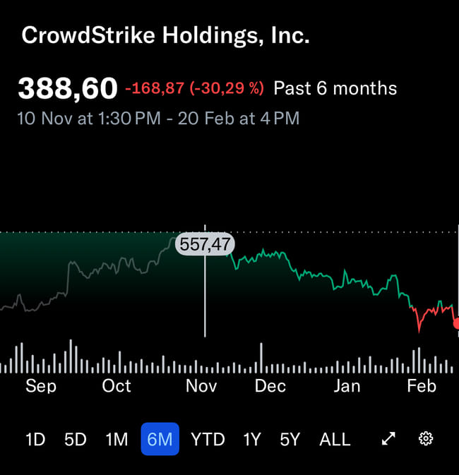 Koukám teď na $CRWD co udělá na spodní hraně trendové linie. Tam se podle mě bude lámat chleba.
