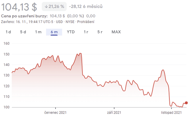 Pohybuje se totiž velmi rychle. Příkladem může být to, jak se během týdne kolem zisků propadla o 33 %. To přišlo po 8měsíční 20% recesi. Reakce na její poslední výsledky byla prudce negativní. Ale tato prudká odrazová úroveň poskytla silnou oblast podpory pod 100 dolary za akcii.