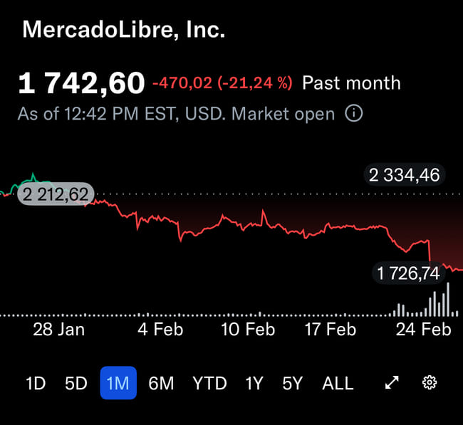 U $MELI jsě byl překvapený, že to spadlo o tolik. Zatím ale nakupovat ani jednu firmu v plánu nemám.