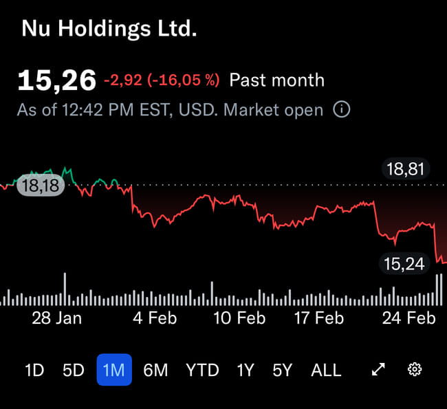 $NU je za mě super byznys a v posledních dnech se akcie propadly, což beru jako příležitost a pozici navyšuji na 5 % portfolia.