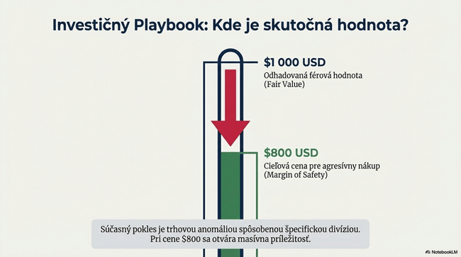 Dnešný trest je reakciou trhu na agresívnu stávku na private credit cez akvizíciu HPS za $12 miliárd vlani.Férovú hodnotu odhadujem okolo $1 000 USD. S požadovaným margin of safety by som chcel vidieť cenu okolo $800 USD — tam by som ho posunul do TOP 10 pozícií svojho portfólia bez váhania.