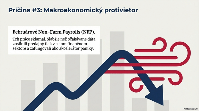 📊 MAKRO POZADIE NEPOMOHLODnes vyšli aj slabšie ako očakávané Non-Farm Payrolls dáta za február — trh práce sklamal, čo zosilnilo predaj vo finančnom sektore.