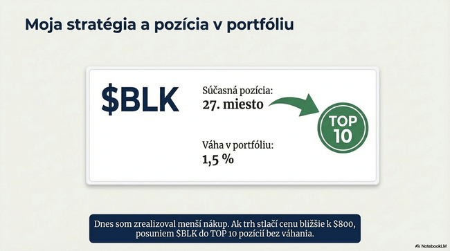 💼 MÔJ POHĽAD & POZÍCIA V PORTFÓLIU$BLK je momentálne na 27. mieste v mojom portfóliu a tvorí len 1,5 %. Nie je to core pozícia — ale dnešný výpredaj mi pripomína, prečo som ho vôbec na radar dal.