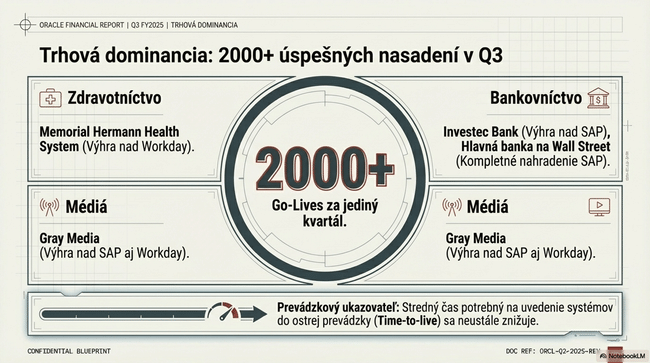 Memorial Hermann nad Workday. Investec Bank nad SAP. Veľká Wall Street banka nahradila SAP úplne. Gray Media porazila Workday aj SAP súčasne. A to je len krátky zoznam — vedenie povedalo, že je to zlomok celkových výhier. Stredný čas potrebný na nasadenie systémov sa navyše neustále znižuje. Momentum nerastie len v číslach. Rastie v rýchlosti.