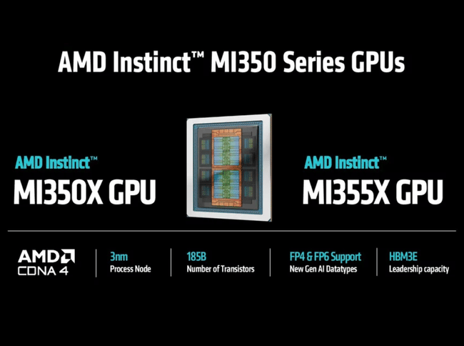 Instinct MI355X je vlajková loď čtvrté generace architektury AMD CDNA, vyrobená procesem TSMC 3nm.