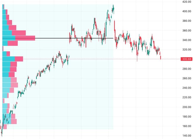 Z pohledu volume, tedy objemu obchodů, bylo ale nejvíce obchodů, od dubna, provedeno na ceně $340 a následně $300 kde se can nyní nachází. Akcie tedy opravdu může dále oslabovat. Už teď je ale o více než 100 dolarů pod svou maximální hodnotou z prosince loňského roku.