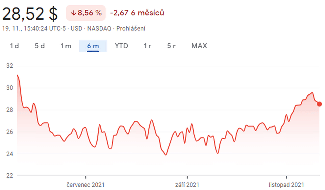 - Současná cena $MCFT akcií - 28,52 dolarů