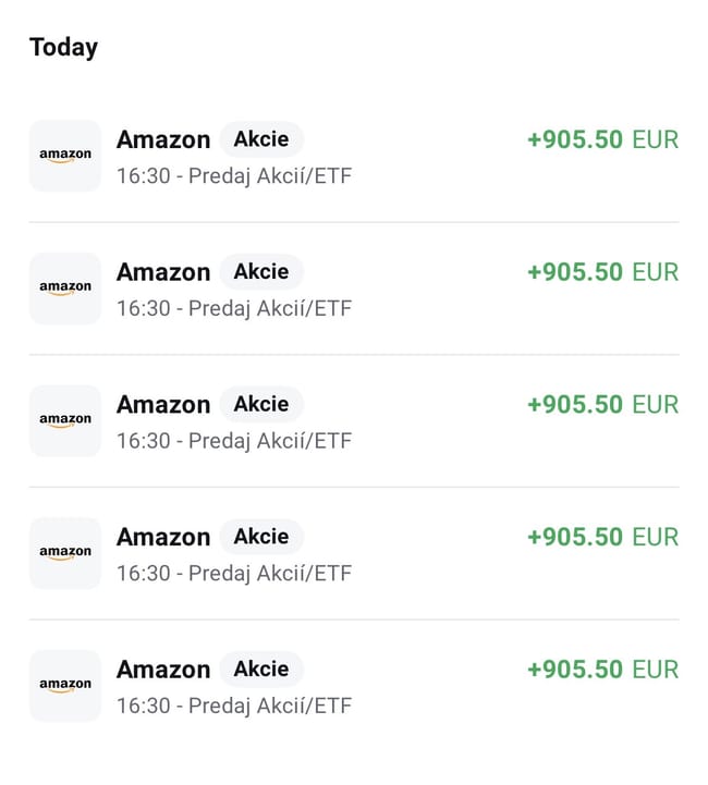 Predal som celú pozíciu v $AMZN . 4 527,50 EUR. 💸