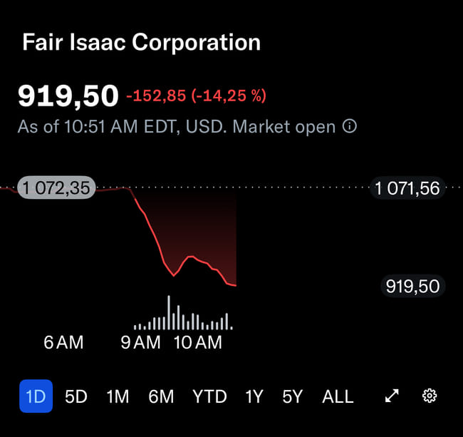 Zajímavý point, ale přijde mi, že trh to možná přehání. Fair Isaac Corporation není jen o GenZ dnes, ale o celém kreditním systému dlouhodobě, takže krátkodobý tlak nemusí nutně znamenat strukturální problém. Jsi zainvestovaný?