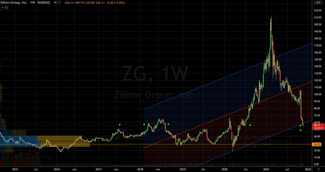 Investoři by také měli být opatrní, protože ocenění nemovitostí je na historických maximech a akcie $ZG se potýkají s problémy. Pokud sektor oslabí, pak budou mít akcie Zillow nové důvody k poklesu.