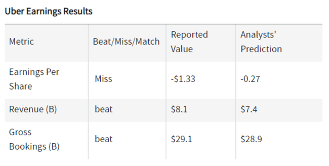 Hrubé rezervace solidně překonaly odhady. A tržby se meziročně více než zdvojnásobily na 8,1 miliardy dolarů, což překonalo předpovědi analytiků, částečně poháněné změnou obchodního modelu v oblasti mobility ve Velké Británii. Společnost však vykázala záporný zisk na akcii (EPS) ve výši -1,33 USD, což je asi pětinásobek očekávané ztráty na akcii. Ztráta byla způsobena nepříznivým vývojem ve výši 1,7 miliardy dolarů před zdaněním, který byl spojen s investicemi do vlastního kapitálu společnosti Uber.